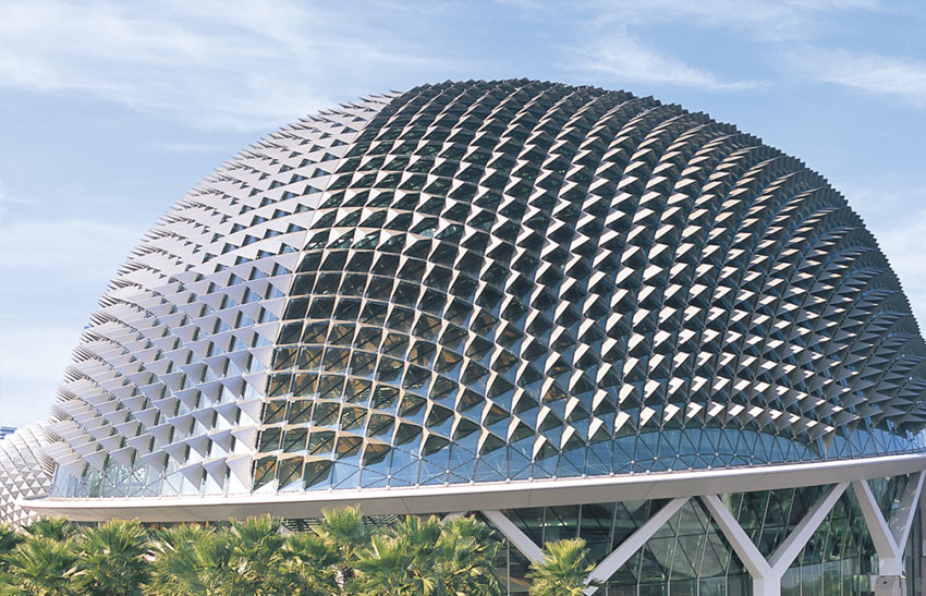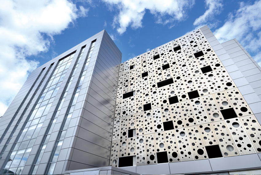 鋁單板幕墻表面一般經過鉻化等前處理后,再采用氟碳噴涂處理。氟碳凃層具有卓越的抗腐蝕性和耐候性,能抗酸雨、鹽霧和各種空氣污染物,耐冷熱性能極好,能抵御強烈紫外線的照射,長期保持不褪色、不粉化,使用壽命長。